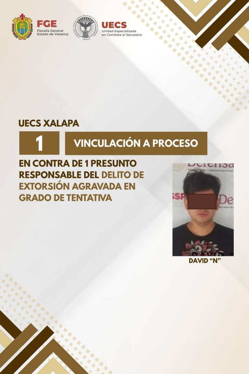 Por cuanto hace a vinculaciones a proceso, en 𝗫𝗮𝗹𝗮𝗽𝗮, un juez de control vinculó a proceso a 𝗗𝗮𝘃𝗶𝗱 “𝗡” por su presunta responsabilidad en el delito de 𝗲𝘅𝘁𝗼𝗿𝘀𝗶𝗼́𝗻 𝗮𝗴𝗿𝗮𝘃𝗮𝗱𝗮 𝗲𝗻 𝗴𝗿𝗮𝗱𝗼 𝗱𝗲 𝘁𝗲𝗻𝘁𝗮𝘁𝗶𝘃𝗮.