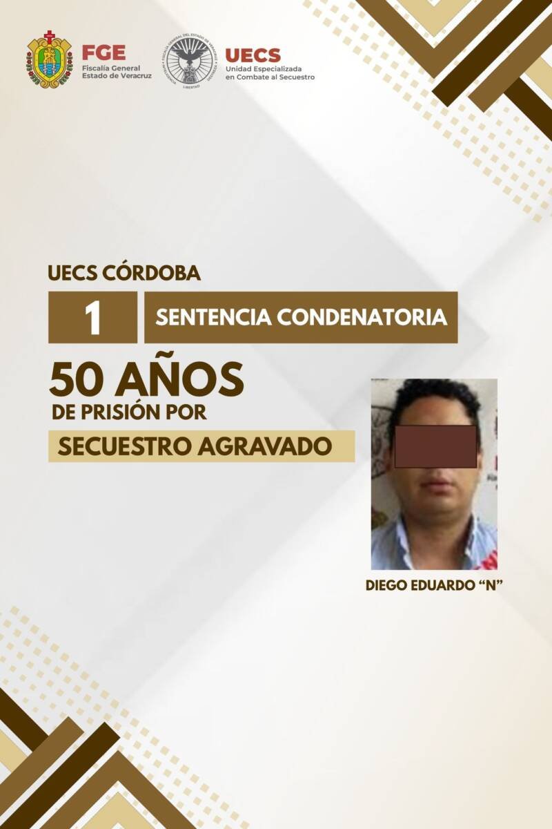 Asimismo, en 𝗛𝘂𝗮𝘁𝘂𝘀𝗰𝗼 fue sentenciado 𝗗𝗶𝗲𝗴𝗼 𝗘𝗱𝘂𝗮𝗿𝗱𝗼 “𝗡” 𝗮 𝟱𝟬 𝗮𝗻̃𝗼𝘀 𝗱𝗲 𝗽𝗿𝗶𝘀𝗶𝗼́𝗻 como responsable del delito de 𝘀𝗲𝗰𝘂𝗲𝘀𝘁𝗿𝗼 𝗮𝗴𝗿𝗮𝘃𝗮𝗱𝗼, por hechos ocurridos en 𝗼𝗰𝘁𝘂𝗯𝗿𝗲 𝗱𝗲𝗹 𝟮𝟬𝟮𝟬 en la colonia 𝗔𝗴𝘂𝘀𝘁𝗶́𝗻 𝗖𝗵𝗶𝗰𝘂𝗲𝗹𝗹𝗮𝗿, de esta ciudad, donde participó en el secuestro de la víctima, por cuya liberación exigió un pago; dichas investigaciones quedaron asentadas dentro del 𝗽𝗿𝗼𝗰𝗲𝘀𝗼 𝗽𝗲𝗻𝗮𝗹 𝗝-𝟮𝟮/𝟮𝟬𝟮𝟰.