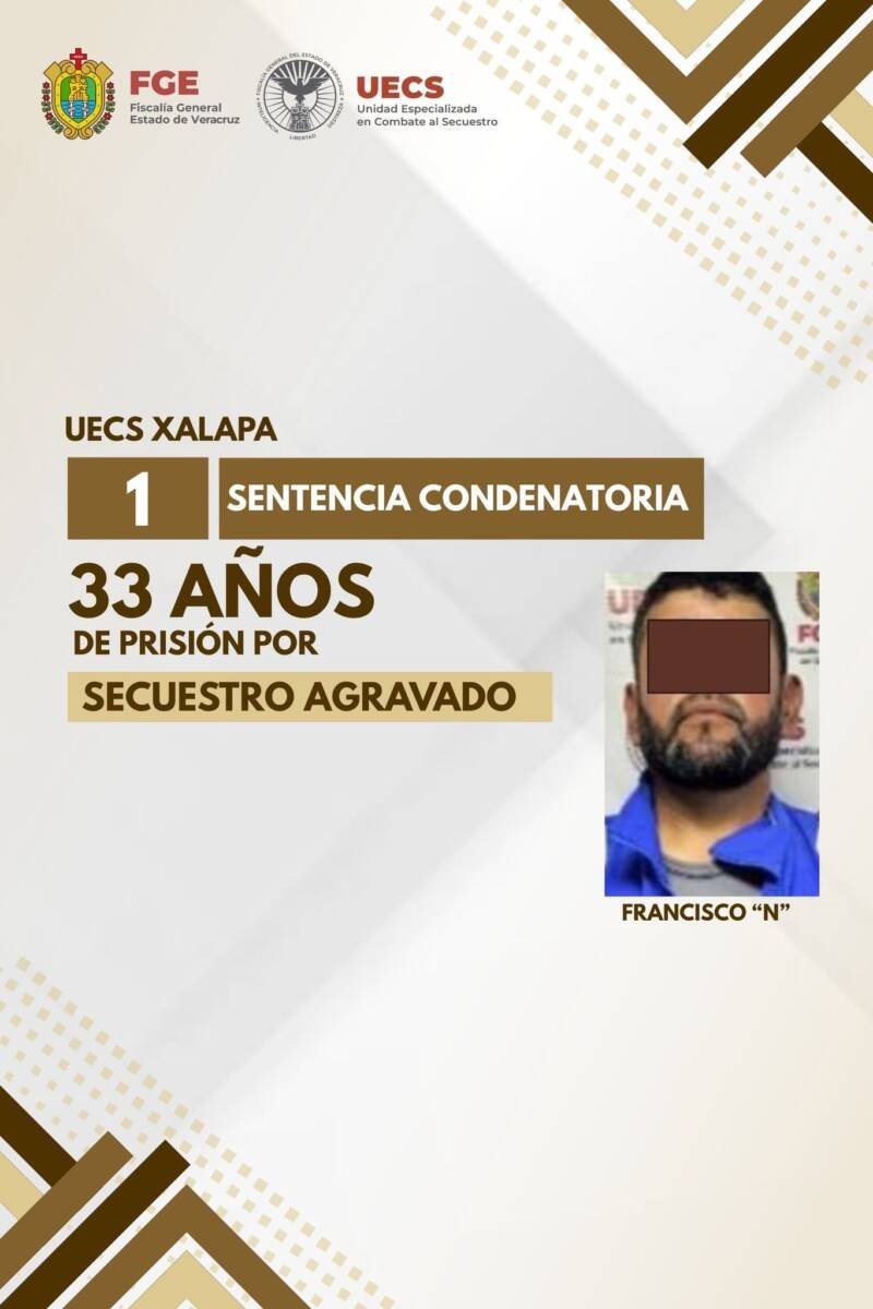 Por otro lado, en 𝗫𝗮𝗹𝗮𝗽𝗮 𝗙𝗿𝗮𝗻𝗰𝗶𝘀𝗰𝗼 “𝗡” enfrenta una condena de 𝟯𝟯 𝗮𝗻̃𝗼𝘀 por su participación en el delito de secuestro agravado, ocurrido el 𝟭𝟰 𝗱𝗲 𝗮𝗴𝗼𝘀𝘁𝗼 𝗱𝗲𝗹 𝟮𝟬𝟮𝟯, cuando privó de la libertad a una víctima en la localidad Normandía, perteneciente al municipio de 𝗟𝗮𝘀 𝗩𝗶𝗴𝗮𝘀 𝗱𝗲 𝗥𝗮𝗺𝗶́𝗿𝗲𝘇.
