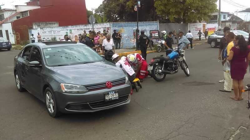 Pareja en motocicleta herida al extrellarse contra Jetta atravesado en calle 11 y avenida 37