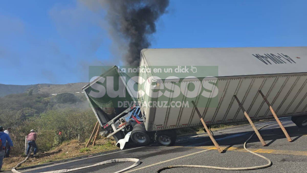 De acuerdo con los primeros reportes, el siniestro involucró dos cabinas con cajas secas, una de las cuales quedó volcada sobre la cinta asfáltica. El impacto provocó el incendio de la unidad, lo que obligó al cierre parcial de la circulación mientras se realizaban las labores de auxilio y control del fuego.