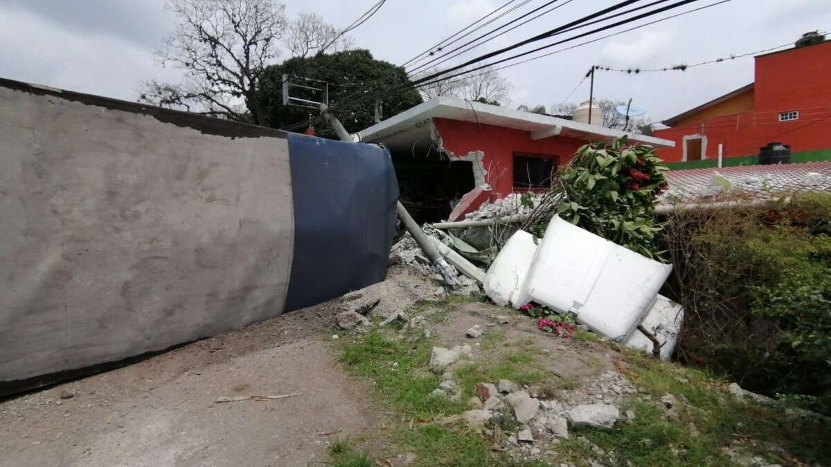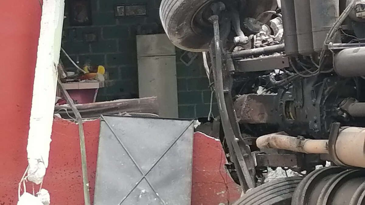 Yanga, Ver.- Luego de intentar rebasar, un Tsuru fue impactado por un camión Torton que lo arrastró varios metros y terminó prensando el automóvil compacto tras chocar contra una casa y volcar en el kilómetro 13 de la carretera federal Córdoba-Veracruz.
