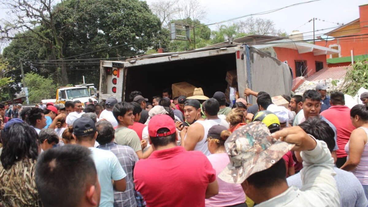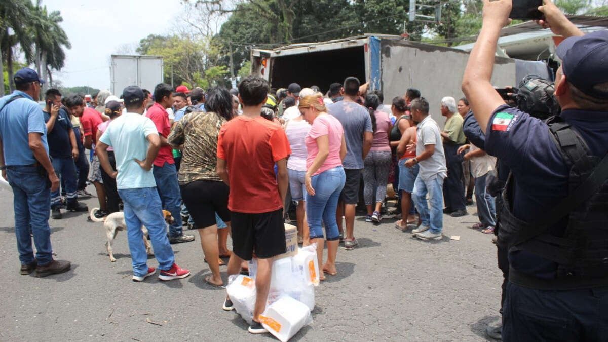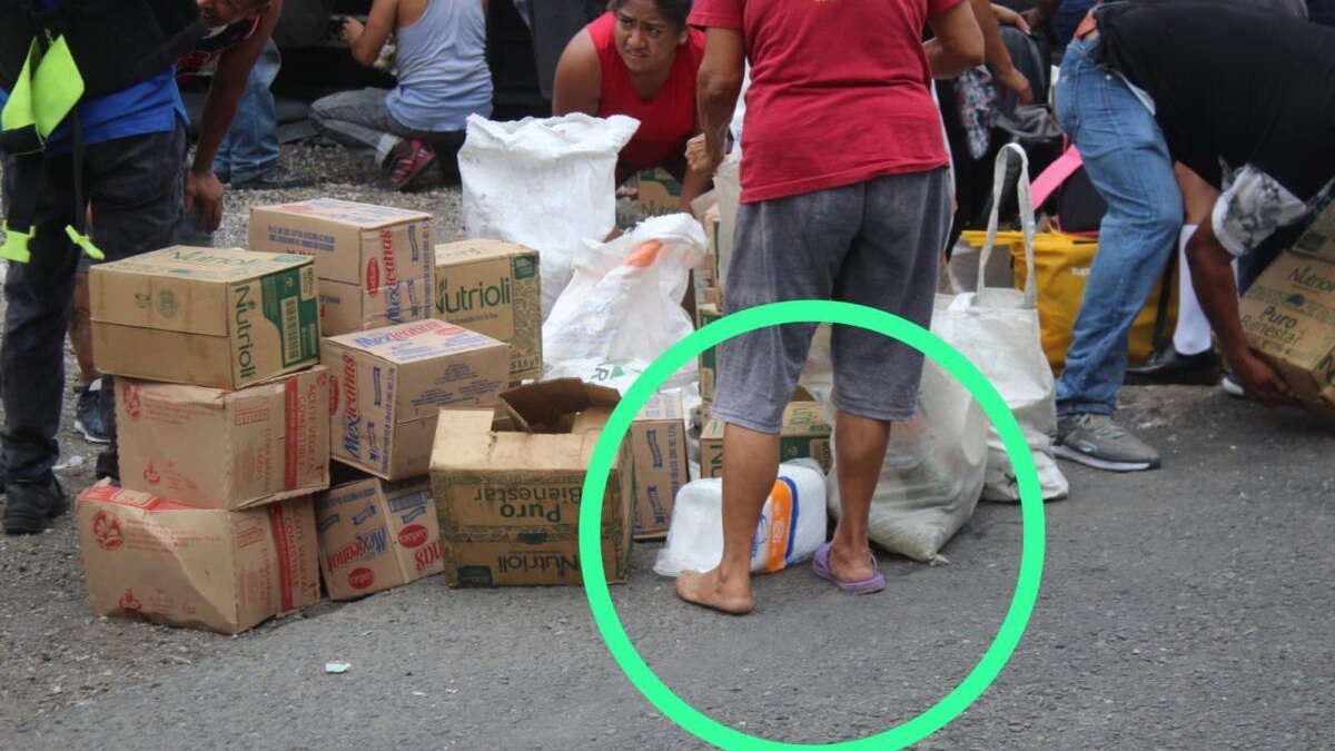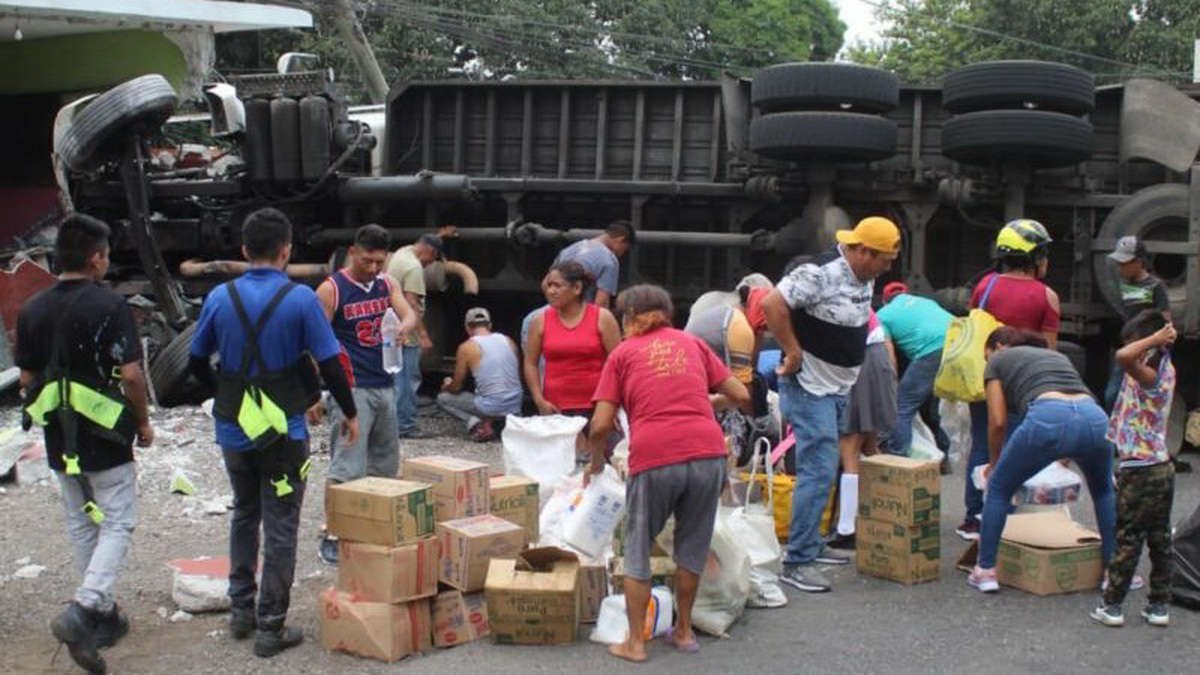 Los videos y fotografías muestras a hombres adultos, jóvenes, mujeres y adolescentes arremolinarse alrededor del camión volcado y disputarse víveres como mayonesas, aceites, agua purificada, granos y otros artículos como si estuvieran desesperados por hambre a pesar de que abajo del carguero se encontraba una persona fallecida.