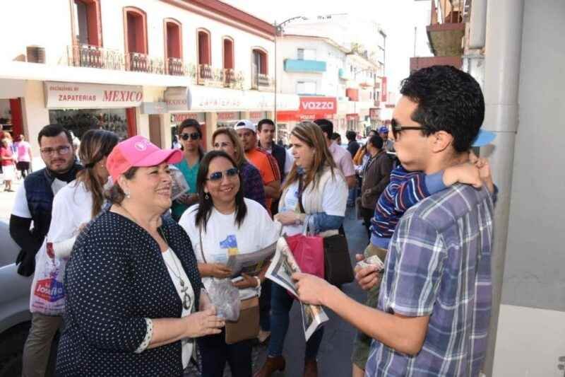 Córdoba 22/12/18.- La alcaldesa de Córdoba, Leticia López Landero, recorrió las principales calles de la ciudad repartiendo un periódico informativo en el cual especifica obras e inversiones que la actual administración realizó en este primer informe de labores.