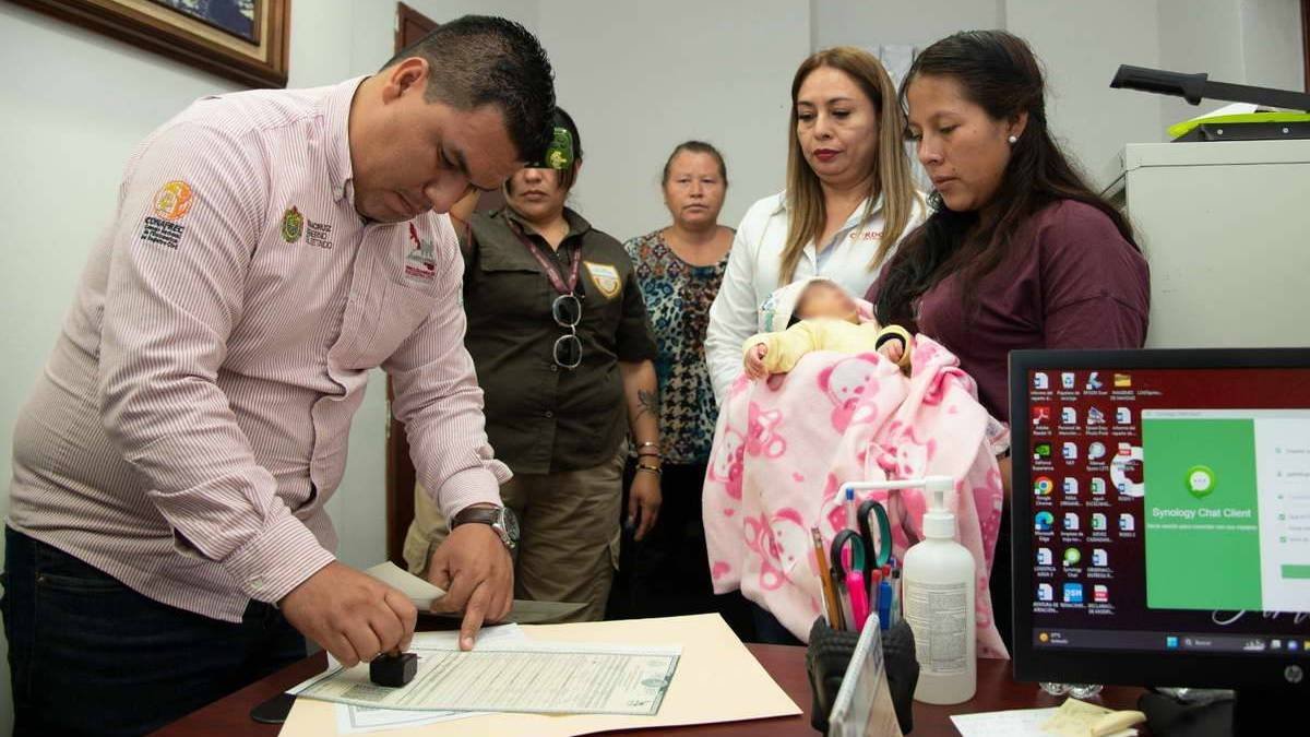 Fue en las oficinas de atención ciudadana, donde el oficial del Registro Civil, Raúl Chávez Suárez llevó a cabo el registro de nacimiento de la pequeña Daniela Marisol M.L., quien es la segunda hija de Glenda Marisol de 21 años originaria de Guatemala y quien ahora con el apoyo de las Patronas busca obtener la visa como primer paso para legalizar su estancia en el país.