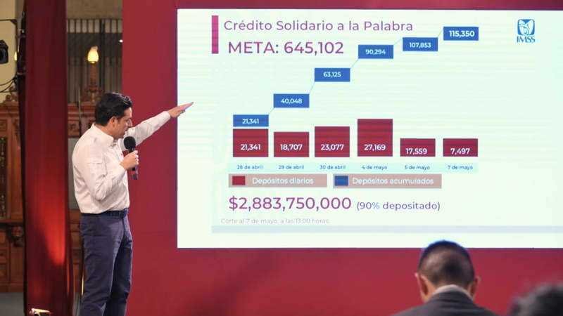 - Al corte del 7 de mayo, 115 mil 350 empresarios solidarios ya cuentan con el depósito de 25 mil pesos.