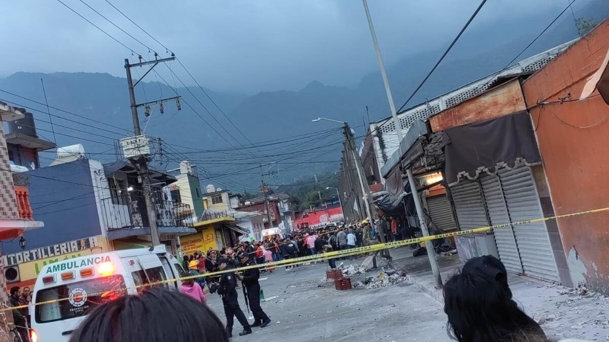 De acuerdo con los primeros reportes, alrededor de las 17:30 horas de este 25 de diciembre, la explosión se inició en este puesto que ofrecía cohetes, generando una onda expansiva que alcanzó los cristales de las ventanas de una funeraria que se encuentra a unos metros.