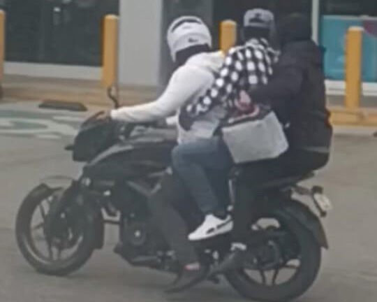 Los hombres viajaban a bordo de una motocicleta Pulsar, negra con gris, uno de ellos con ropas negras y de gorra y otro con pantalón de mezclilla azul marino y camisa de manga larga a cuadros.