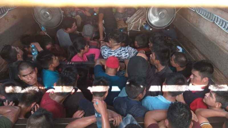 Ante tal situación los uniformados procedieron a la revisión de rutina, al abrir la caja notaron que en su interior viajaban hacinadas unas 80 personas, que presentaban un alto grado deshidratación, por lo que pidieron el apoyo de los cuerpos de rescate.