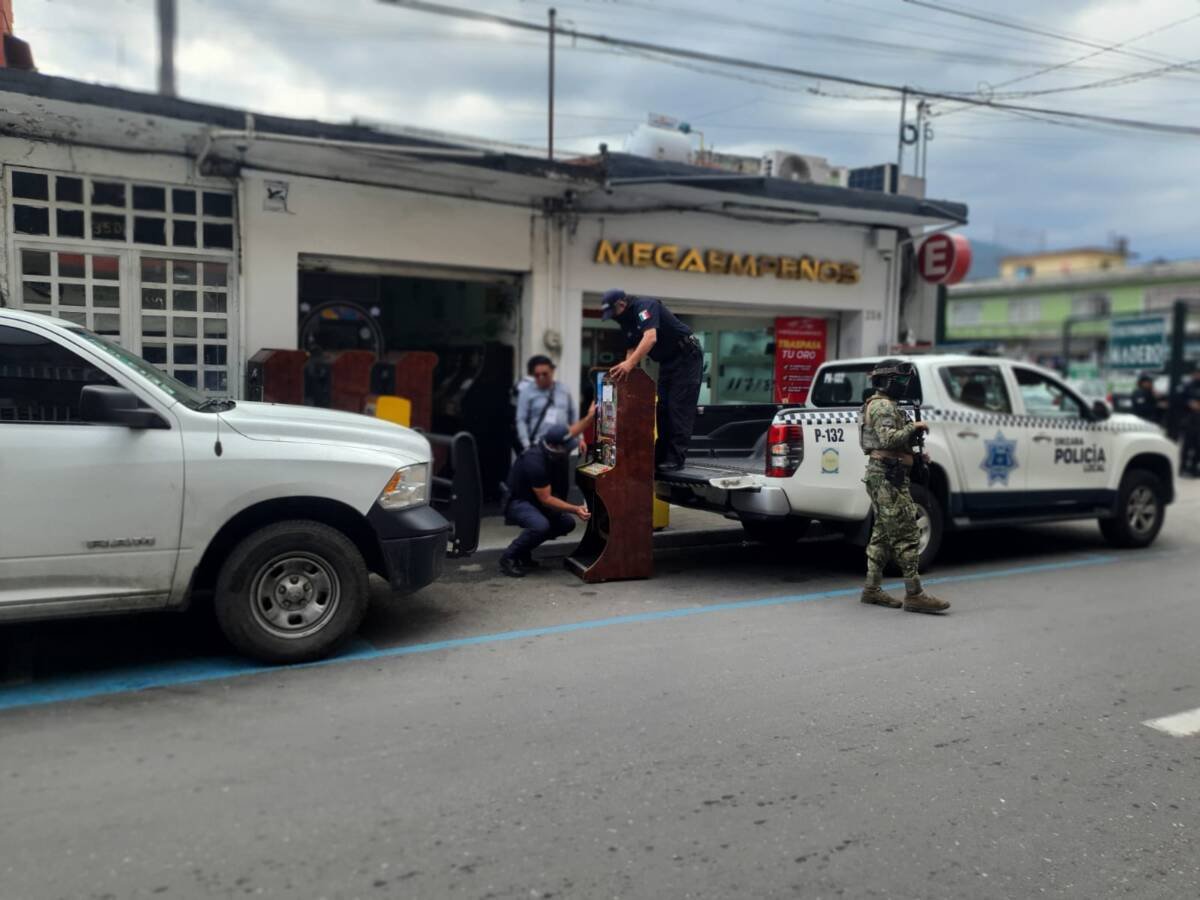 Orizaba, Ver.– Un fuerte despliegue de fuerzas de seguridad se registró en la zona norte de la ciudad, donde autoridades de los tres niveles de gobierno aseguraron alrededor de 50 máquinas tragamonedas, conocidas como “minicasinos”, en distintos puntos del municipio.
