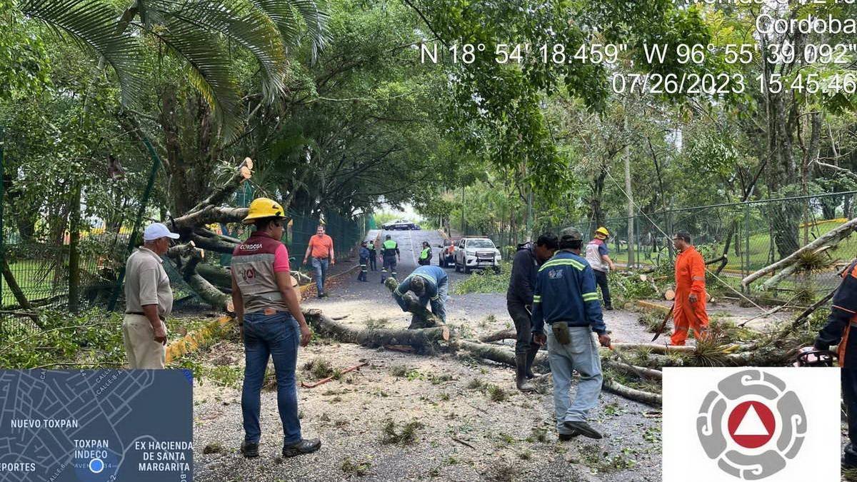 Córdoba, Ver.- La Dirección de Protección Ciudadana y Movilidad reporta que tras el paso de la fuerte lluvia de esta tarde, se presentó la caída de seis árboles y un poste de alumbrado público, un deslave de grava, registros destapados, y daños en casa habitación, mismos que están siendo atendidos por las áreas municipales.
