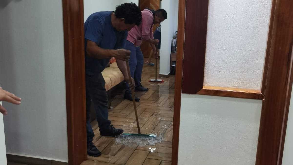 El titular de la Unidad de Protección Civil, Jorge Tress Martínez, informó que se están atendiendo dos llamadas simultáneas, la primera en una vivienda del Infonavit Santa Margarita, donde ingresó agua por el taponamiento del drenaje, y la otra, en la iglesia de San Rafael Calería, por lo que se envió personal para brindar el auxilio a la población.