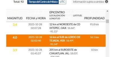 Sismo magnitud 4 con epicentro en Lerdo de Tejada Mariela Pedraza Nambo28 de octubre del 2023 Principal