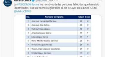 Identifican a 10 personas fallecidas tras desplome de la Línea 12 Redacción4 de mayo del 2021 Nacional
