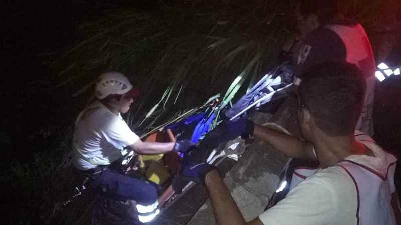 Cuitláhuac, Ver.- La falta de señalización provocó que en las primeras horas de este domingo un coche cayera del Puente de la Muerte, ubicado en la comunidad El Zapote, cuando circulaba sobre la carretera estatal a San José de Abajo, dejando a dos personas son graves lesiones, entre ellas una señora, la cual tuvo que ser rescatada en forma vertical del lugar.