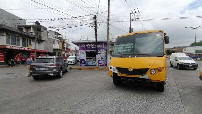 Córdoba, Ver.- Una colisión entre una camioneta conducida por una mujer y un autobús de la ruta López Arias-Aguillón-Conchitas se registró esta tarde en el crucero de la avenida 11 y calle 19 dejando daños materiales en la camioneta Volkswagen participante.
