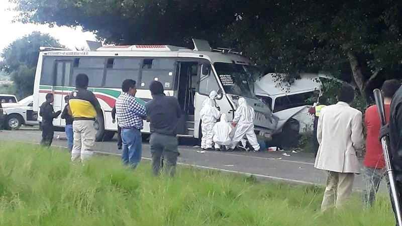 Acajete, Puebla.- El choque entre un autobús y una combi de pasajeros en la comunidad de Nenetzintla, perteneciente a este municipio dejó un saldo de 8 personas muertas y dos más heridas esta mañana de domingo.