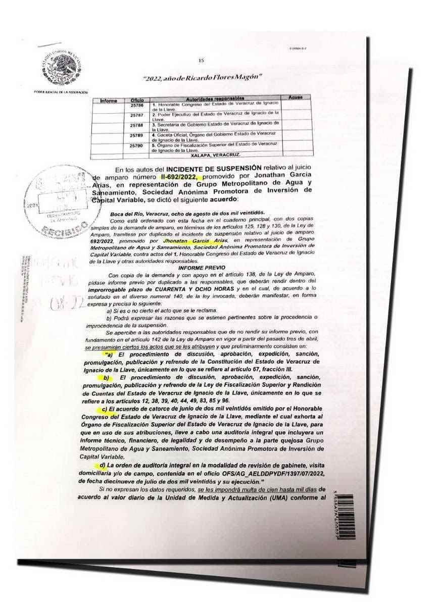 En entrevista, el Presidente de la Comisión Permanente de Agua Potable y Saneamiento señaló que esta decisión del Juzgado Cuarto de Distrito, con sede en la ciudad de Boca del Río, será determinante para conocer la situación actual de la empresa, la cual -lejos de cumplir con las cláusulas de la concesión para mejorar los servicios- tiene abandonado el manteamiento de la infraestructura hidráulica y se ha dedicado a cobrar tarifas injustas a la población.