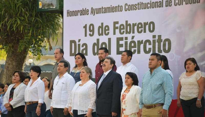 Córdoba, Ver.- En acto cívico realizado en la explanada del parque 21 de Mayo encabezado por la presidenta Leticia López Landero, el Ayuntamiento de Córdoba conmemoró este miércoles el Día del Ejército Mexicano.