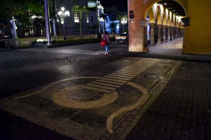 En esta ocasión fue la pintura que se aplicó en la Avenida 1 y la Avenida 3, a un costado de la catedral de la Inmaculada Concepción, la cual marca la línea peatonal.