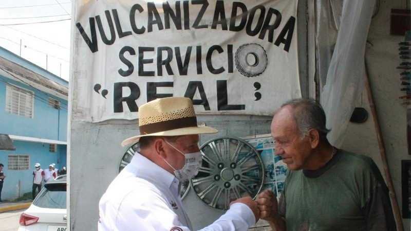 El candidato del pueblo, escuchó con detenimiento a cada uno de los vendedores, entre ellos a Reyna Sánchez, quien dijo que le cerraron su negocio durante cinco años y medio, por lo que tuvo que invertir en la defensa legal y en ese tiempo su esposo se deprimió por la clausura de su negocio y falleció.