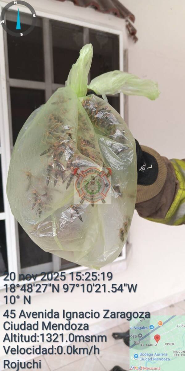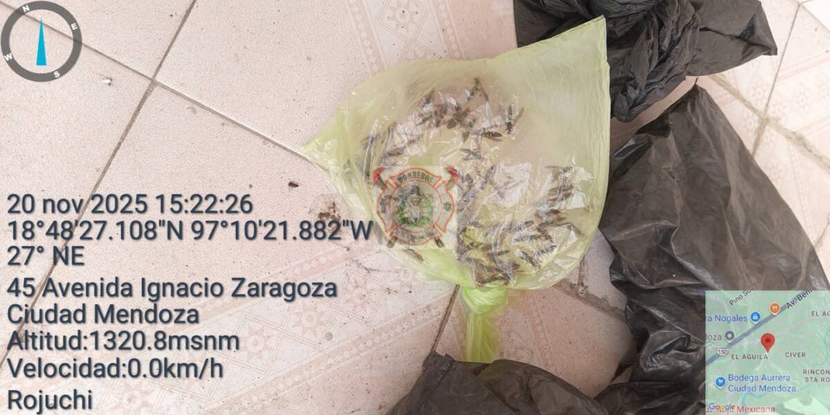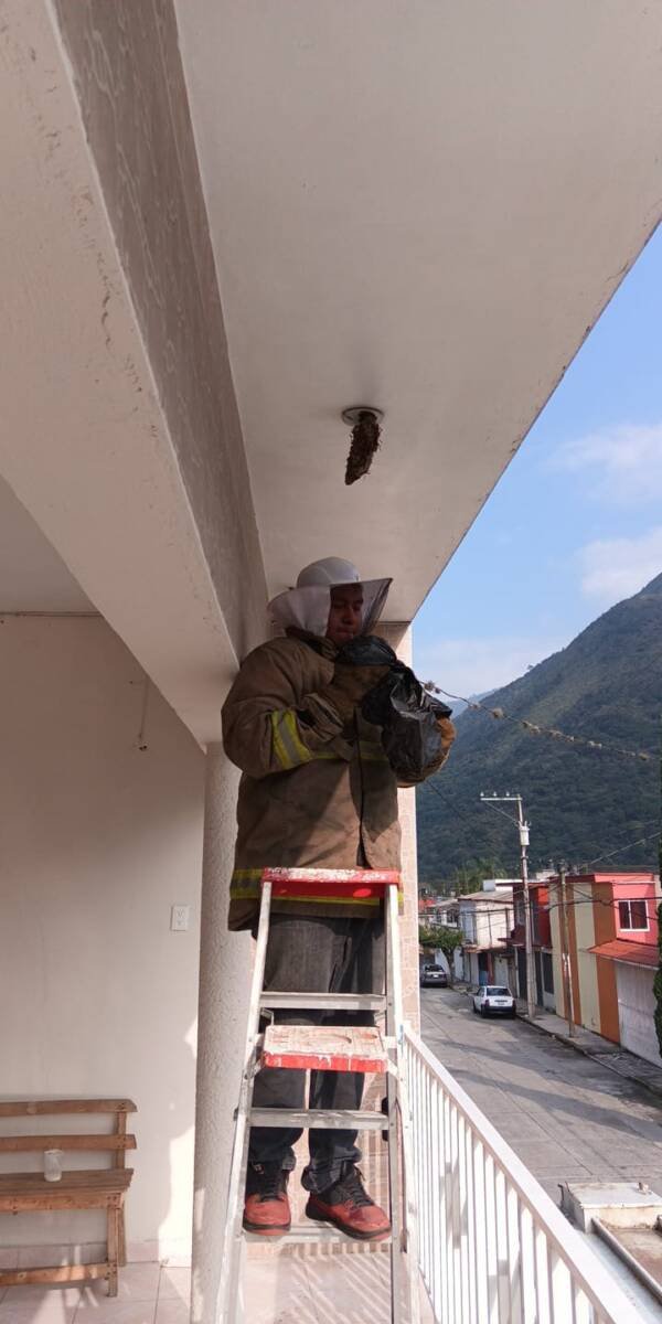 Nogales, Ver.— Con una intervención rápida y precisa, los Bomberos y Paramédicos Regionales Altas Montañas retiraron este día siete panales de avispa negra hallados en un domicilio de la colonia El Águila, en Nogales, evitando un riesgo significativo para la familia afectada y los vecinos.