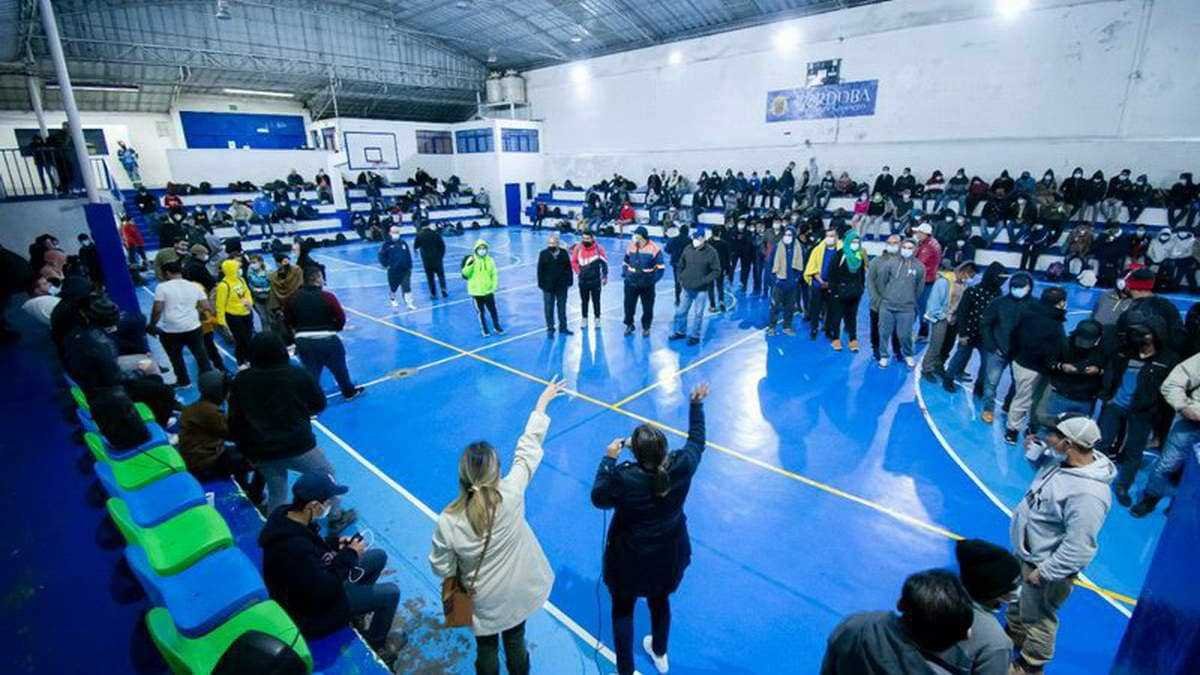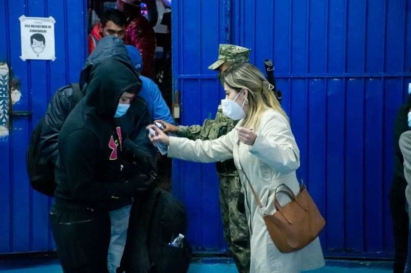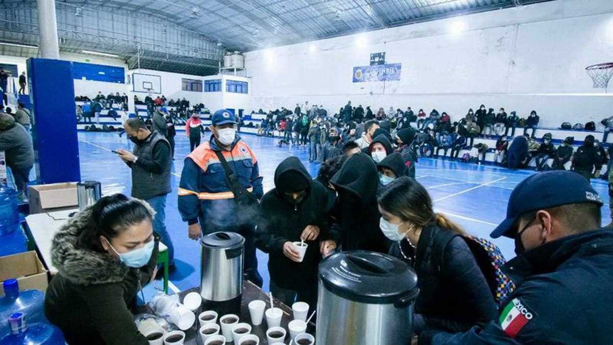 Directivos y personal de las distintas área del Ayuntamiento se sumaron para repartir alimentos y cobertores, así como cuidar el filtro sanitario a la entrada del gimnasio, donde los migrantes permanecerán hasta que personal del Instituto de Migración defina su situación.