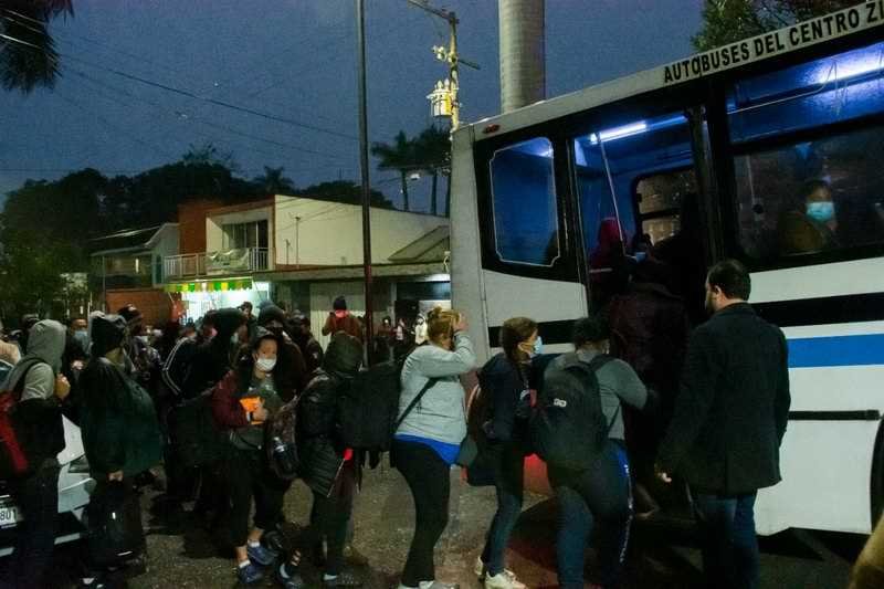 Personal de la Dirección de Protección Ciudadana y Movilidad, de la dirección de Desarrollo Social, Educación, Cultura y Deporte, Atención Ciudadana, apoyaron para brindar atención a los migrantes, así como diseñar la logística para trasladarlos a salvo al gimnasio municipal de San José, donde se les brindó alimentos, bebidas calientes y se inició su revisión médica.