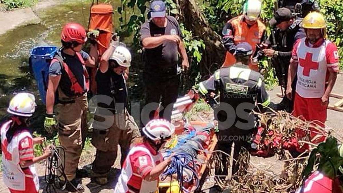 Vecinos que se percataron del hecho dieron aviso al 911 acudiendo al lugar elementos de rescate urbano de Cruz Roja, personal de Protección Civil y Bomberos quienes tras subirlo a una canastilla lo rescataron.