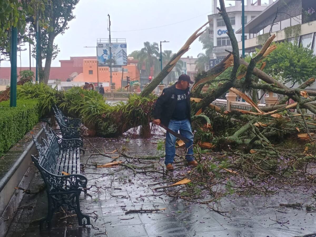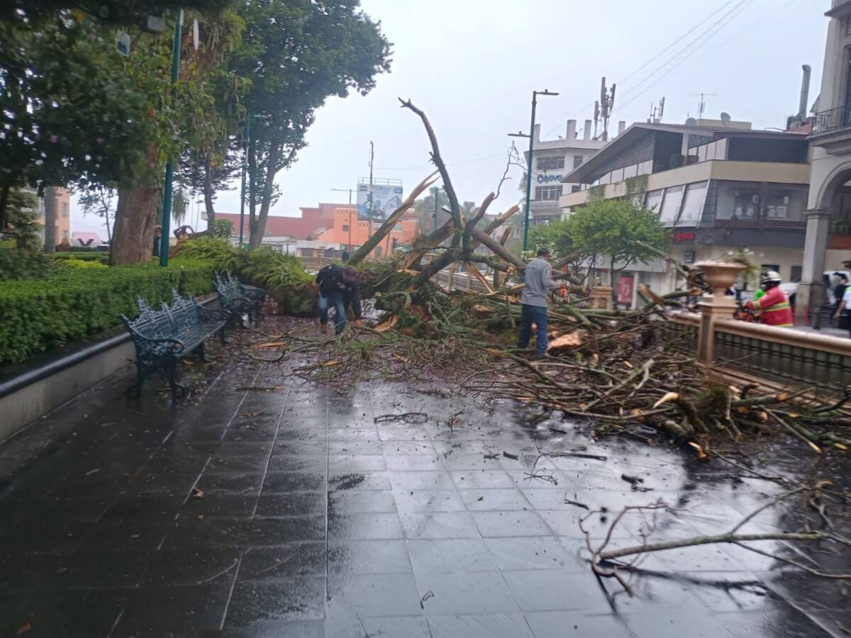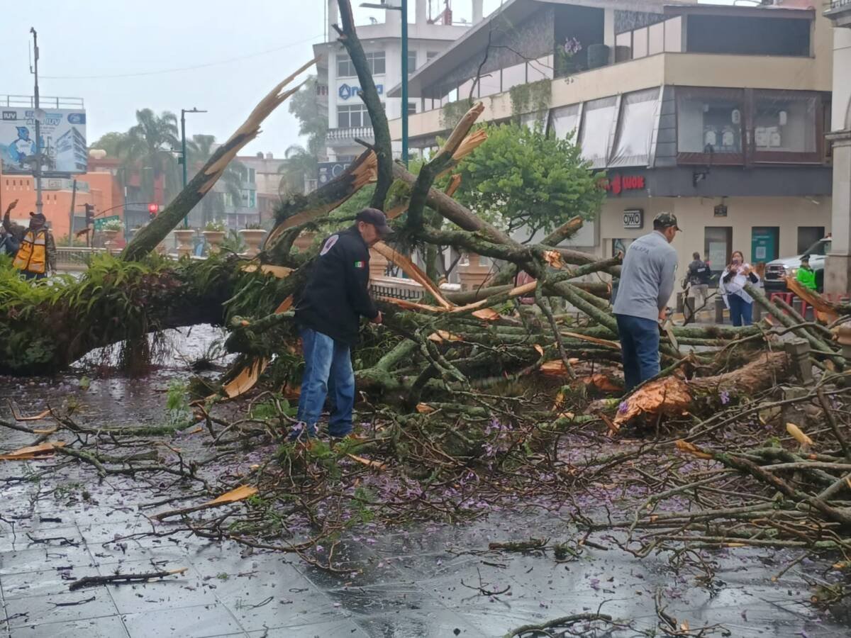 Xalapa, Ver.- El director de Protección Civil municipal, Ricardo Fonseca Martínez, dio a conocer que por lo menos diez árboles y varias ramas han caído en distintas zonas de Xalapa a consecuencia de los efectos del Frente Frío número 37, aunque el caso más aparatoso fue el de una jacaranda en pleno centro de la capital del estado.
