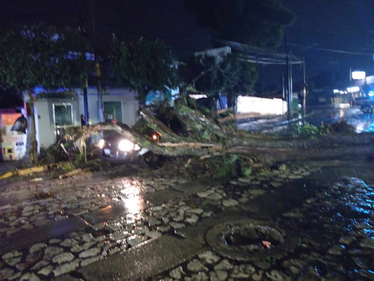 Cae árbol sobre patrulla del IPAX; se salvan policías