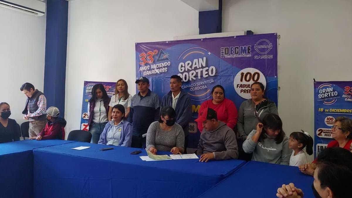 Córdoba, Ver.- Con la presencia de la interventora de la secretaría de Gobernación Gabriela Betanzos Zepeda, la CANACO Servytur Córdoba a través de su presidente, Octavio Burguette Barradas hizo entrega de los 5 premios principales del magno sorteo en su edición 33.