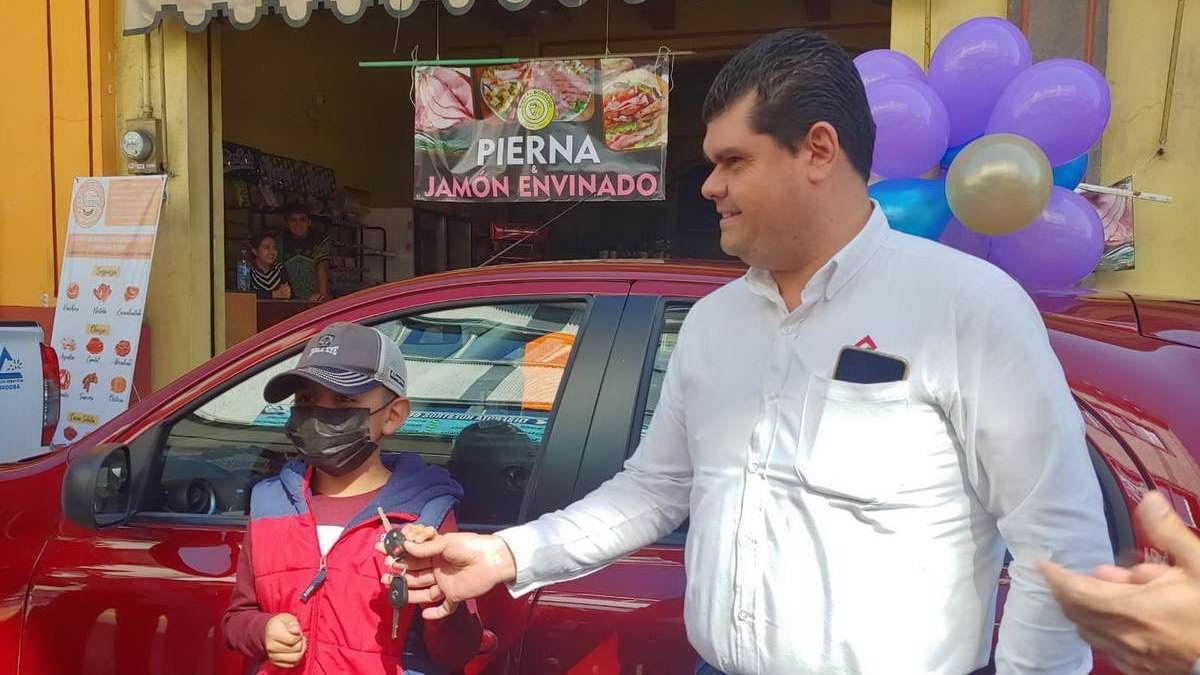 Gabriel Alexis Velázquez de Aquino, pequeño de 9 años ganador del primer premio, recibió de manera simbólica las llaves del auto march color rojo, ya que al ser menor de edad se tienen que cumplir ciertos requisitos, pero podría ser en unos días cuando se lo pueda llevar, señaló el presidente de CANACO, Octavio Burguette.