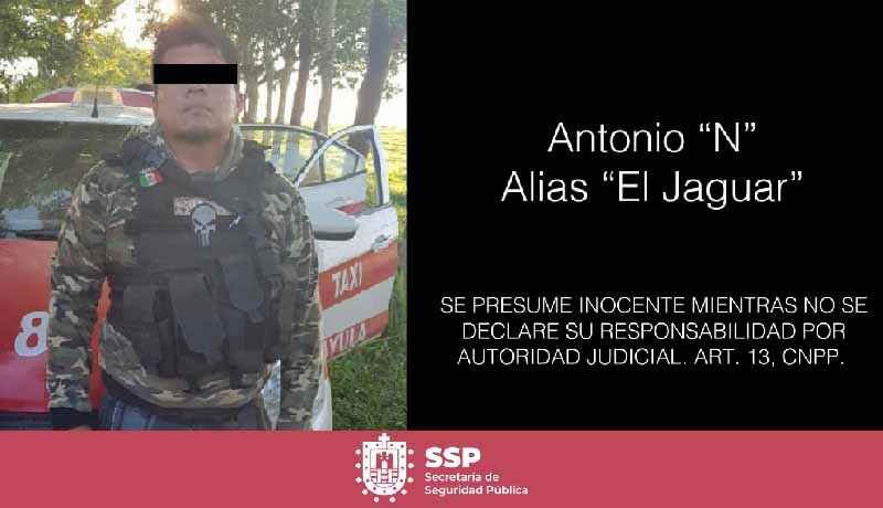 Xalapa, Ver.- Fuerzas del orden de la Secretaría de Seguridad Pública (SSP) capturaron este fin de semana al presunto operador principal y jefe de plaza del Cártel Jalisco Nueva Generación (CJNG) en Tres Valles, el expolicía Antonio “N”, conocido como “El Jaguar”, quien trabajó en las policías municipales de Cuitláhuac, Tlacotalpan y Juan Rodríguez Clara.