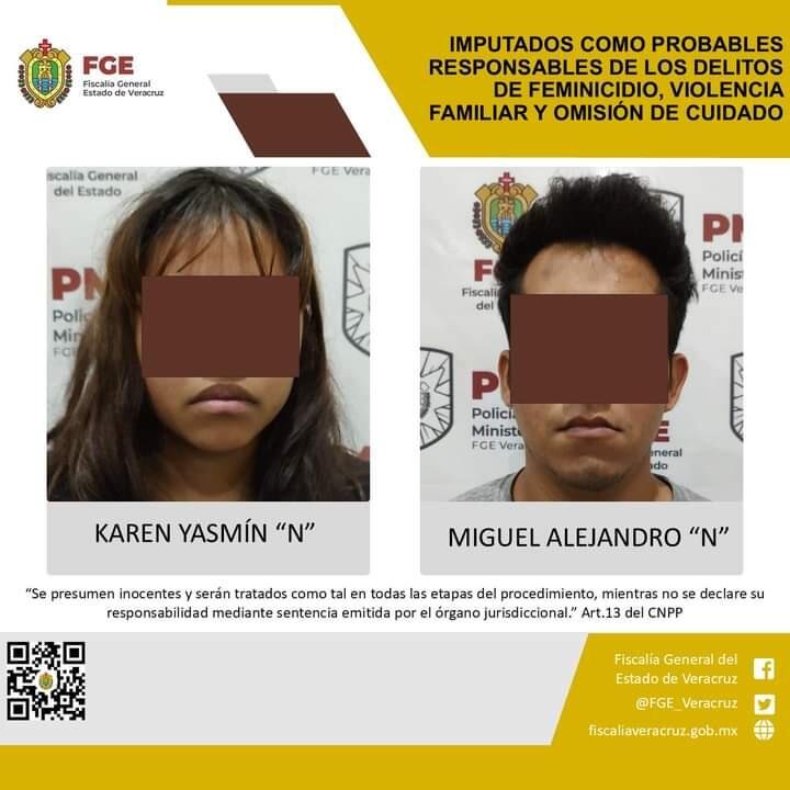 Córdoba, Ver., 21 de agosto del 2024.- La Fiscalía Especializada en Investigación de Delitos de Violencia Contra la Familia, Mujeres, Niñas y Niños y de Trata de Personas realizó imputación en contra de Miguel Alejandro “N” y Karen Yasmín “N” como probables responsables de los delitos de feminicidio, violencia familiar y omisión de cuidado cometido en agravio de una menor de edad con identidad resguardada.
