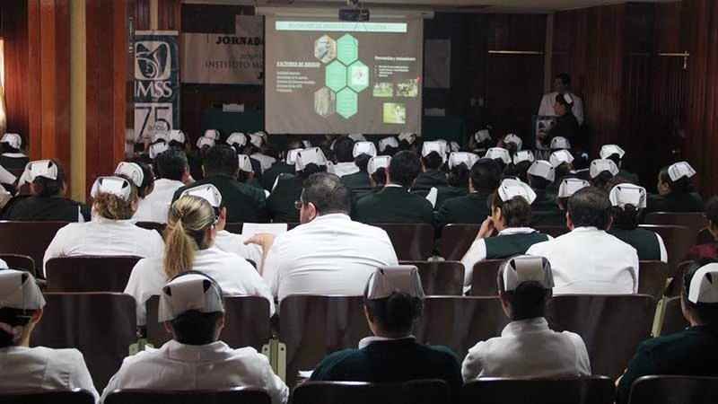 En el marco del 75 Aniversario del Instituto Mexicano del Seguro Social (IMSS) la delegación Veracruz Sur celebró las Jornadas de Enfermería a la que asisten más de 100 profesionales de esta disciplina de clínicas y hospitales, con la finalidad de fortalecer y actualizar conocimientos que impacten en forma positiva en las actividades administrativas y operativas que realizan en beneficio de los derechohabientes.