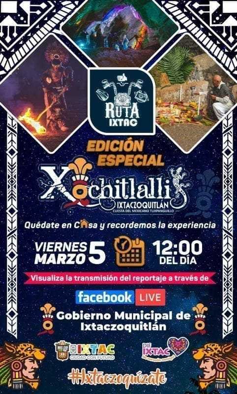 Por ello, y anteponiendo la salud de la población y por recomendación de la Secretaría de Salud, se trasmitirá el viernes 5 de marzo en punto de las 12:00 horas a través de las redes sociales del Ayuntamiento y de manera virtual el documental “Ruta Ixtac” en el que se podrá conocer más sobre la tradicional ceremonia.