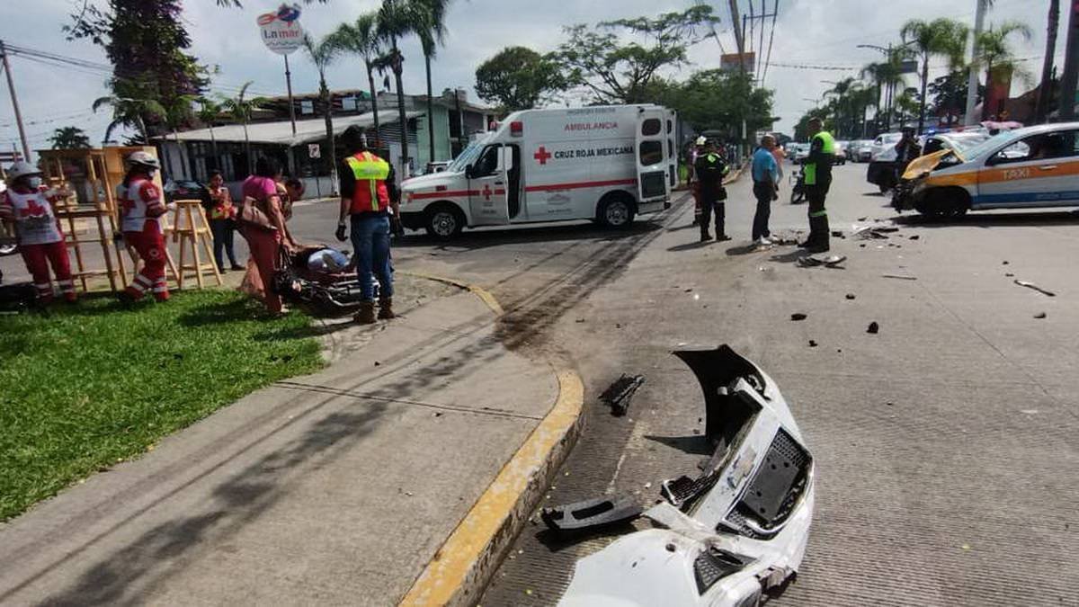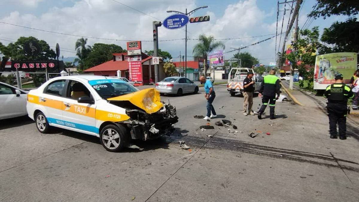 Córdoba, Ver.- Movilización de los grupos de auxilio así como también de las autoridades de Tránsito Municipal, fue lo que dejó la tarde de este domingo un accidente donde se vio involucrada una camioneta de la dirección de Protección Civil Municipal, al chocar contra el taxi marcado con el número CO-2193, debido a que uno de los conductores aparentemente no respetó la luz roja del semáforo provocando el accidentes en el cruce de la avenida 11 con calle 17 en la colonia Centro.