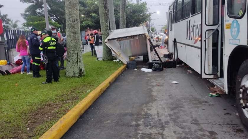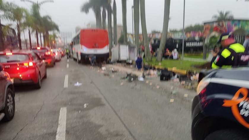 La camioneta fue proyectada sobre el parque Quinto Centenario quedando parcialmente destruida en tanto que en el autobuses resultaron con lesiones leves 11 pasajeros.