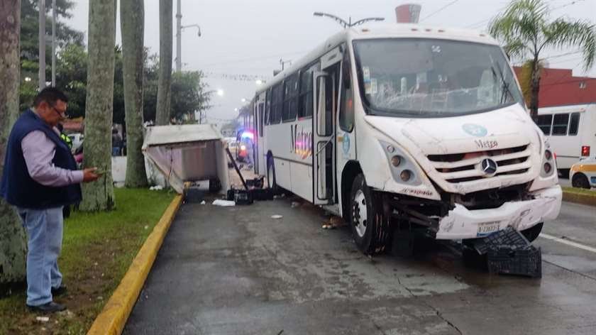 Córdoba, Ver. – Once pasajeros de un autobús resultaron lesionados al chocar la unidad en que viajaban contra una camioneta en el crucero de la avenida 11 y calle 10.