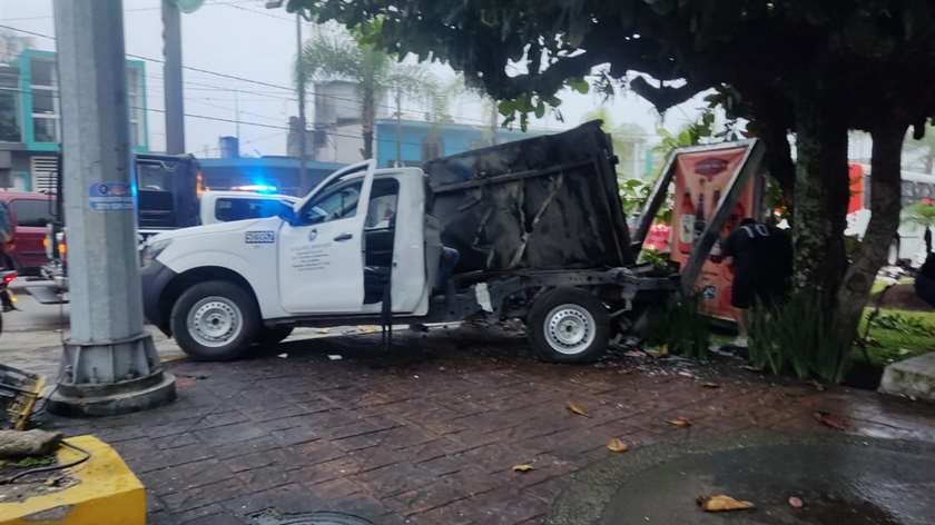 Los hechos ocurrieron esta mañana cuando una camioneta Nissan color blanca con placas de circulación LF 60 027 propiedad de Grupo Bafar que circulaba sobre la avenida 11 dio vuelta para incorporarse al bulevar Tratados de Córdoba sin tener paso en el semáforo.