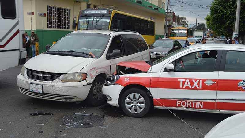 Córdoba, Ver.- Un choque entre un taxi de Fortín y una camioneta SUV dejó una señora y un menor con golpes contusos mientras que las unidades sufrieron daños severos además de bloquear parcialmente la circulación en la intersección de la avenida 11 y calle 9.