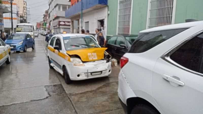 Los hechos ocurrieron en la avenida 2, entre calles 1 y 3 por donde circulaba el taxi con número CO-2230 sin placas de circulación el cual al tratar de hacer un rebase no frenó a tiempo y el piso resbaloso provocó se impactara contra la parte posterior de la camioneta.