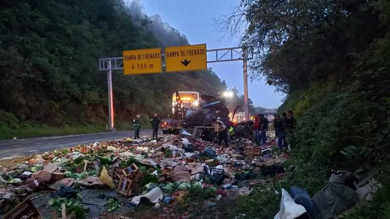 Maltrata Ver.-Un operador tuvo una muerte trágica y lamentable , luego de que el tractocamion cargado con legumbres que conducía, chocara contra un talud y volcara sobre la autopista Puebla Córdoba del tramo de Maltrata Ciudad Mendoza, madrugada de este miércoles.
