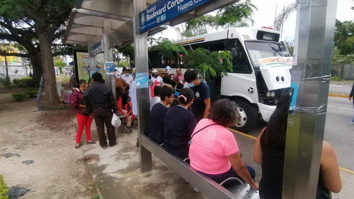Córdoba, Ver.- El choque por alcance entre dos autobuses registrado esta tarde en la parada que se ubica cerca de la plaza comercial de Walmart sobre el bulevar Fortín-Córdoba dejó un saldo de al menos 15 personas lesionadas.
