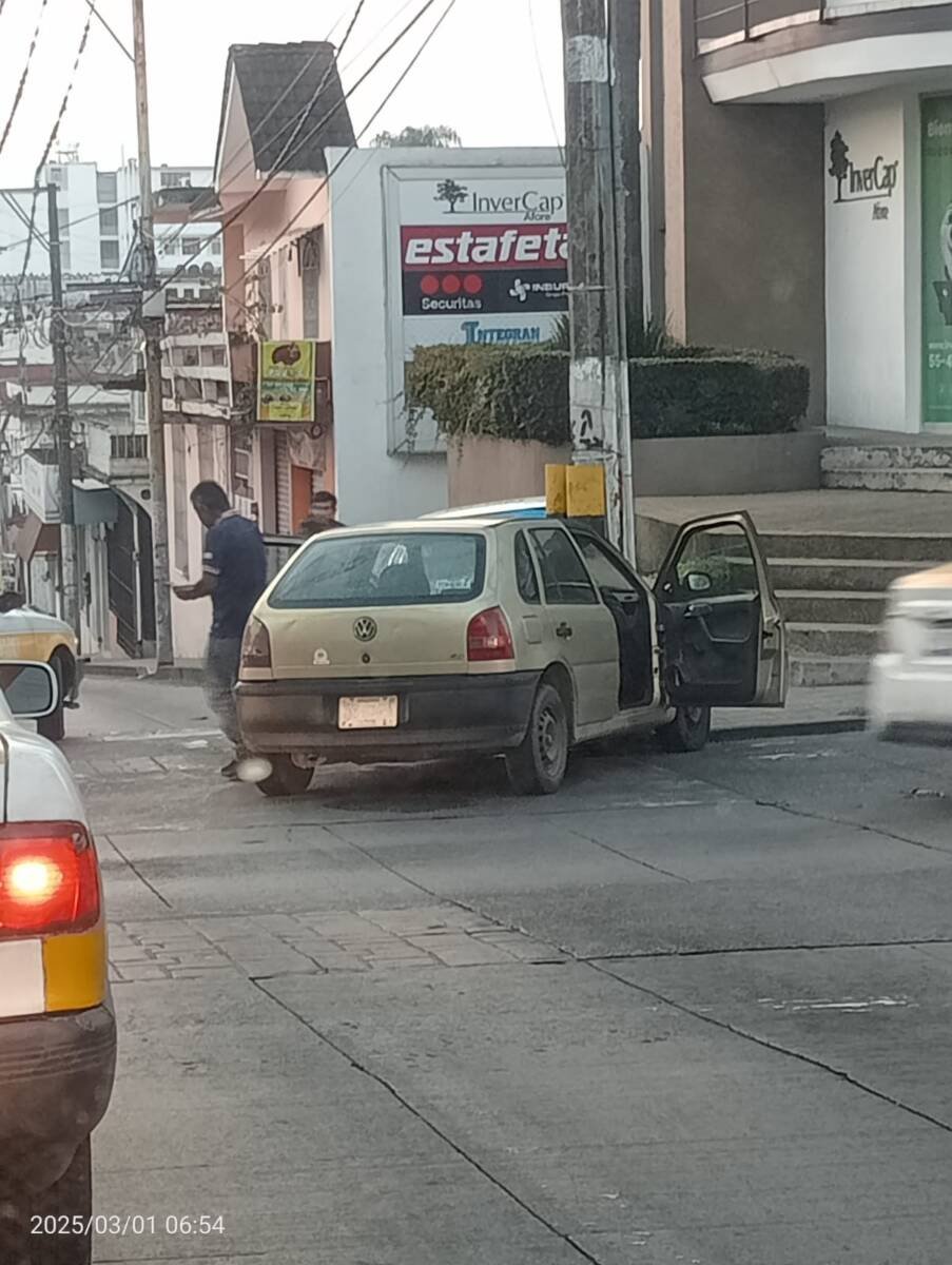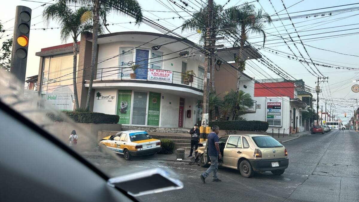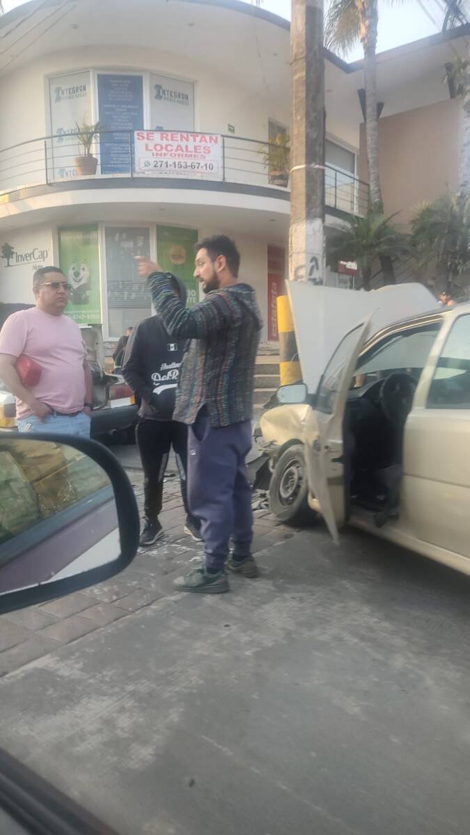 Córdoba, Ver.- Un aparatoso choque fue el que se registró hace unos minutos entre un vehículo Pointer y el taxi marcado con el número CO-1863, debido a que uno de los conductores aparentemente al no respetar la luz roja del semáforo ni tampoco realizar acto total, ocasionó el accidente en el cruce de la avenida 3 y calle 10 en la Colonia Centro.