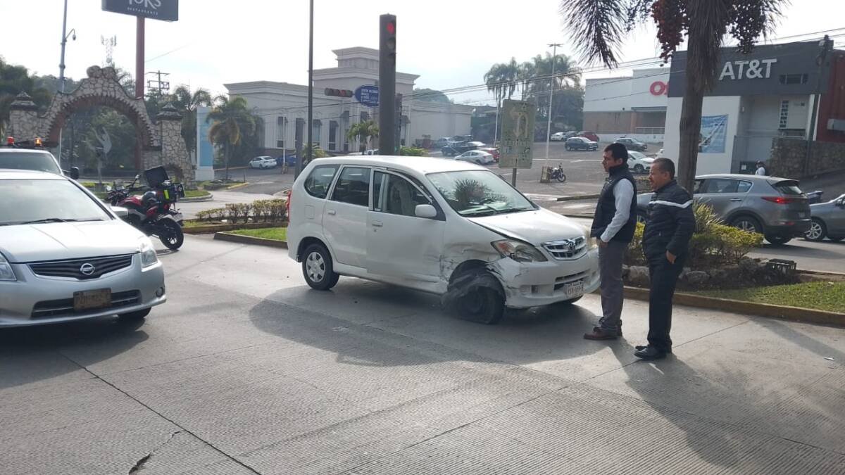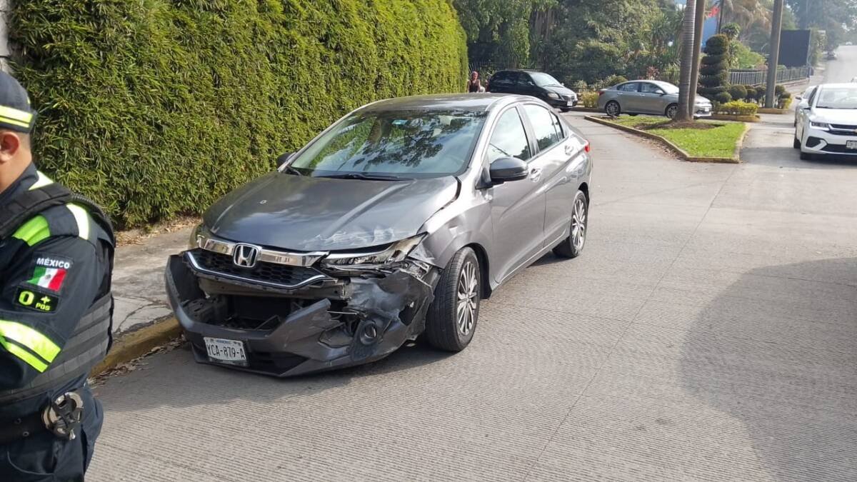 Sin embargo, un vehículo compacto de color oscuro, marca Honda-City, que salía del área del Arco de Shangri-La, presuntamente no respetó la señalización vial, lo que provocó el impacto entre ambas unidades.