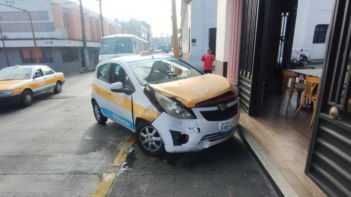 Córdoba, Ver.- Un percance vehicular fue el que se registró durante la mañana del jueves, sobre el cruce de la avenida 2 esquina de la calle 2 en la colonia Centro, en donde un vehículo del servicio público taxi con número 183 quedó arriba de la banqueta y estuvo a punto de meterse a un negocio, tras chocar contra un automóvil Seat ya que ambos conductores presuntamente no respetaron la luz roja del semáforo provocando dicho accidente.