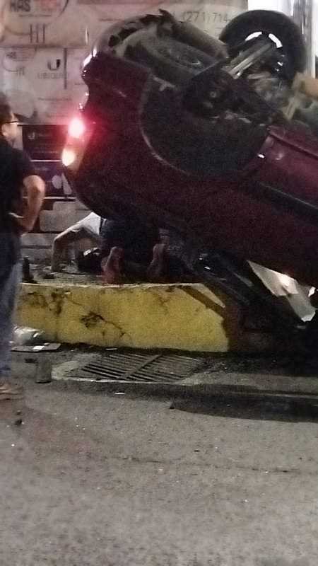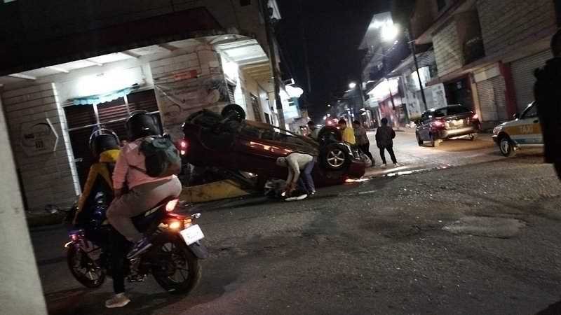 Debido al impacto la minivan salió proyectada contra la banqueta dónde volcó y quedó con las llantas para arriba, sus tripulantes quedaron sobre la banqueta policontundidos.