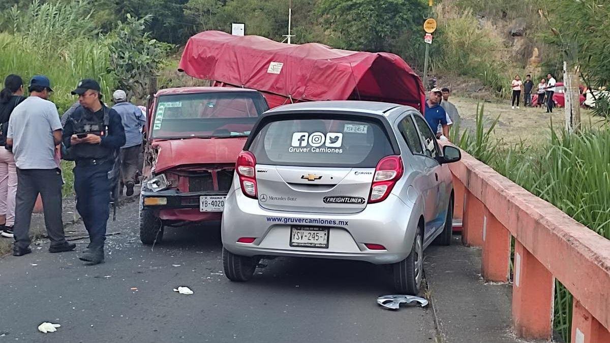 El percance se registró a la altura del puente del Río Seco en San Rafael Calería, cuando el conductor de una camioneta Datsun de redilas de modelo atrasado, perdió el control de esta misma luego de quedarse sin frenos en la pendiente de San Rafael Calería hacia la Luz Palotal, por lo que intentó detenerla con el barandal del puente saliendo proyectado sobre un vehículo Chevrolet Beat propiedad de una empresa Automotriz que circulaba rumbo a San Rafael Calería.